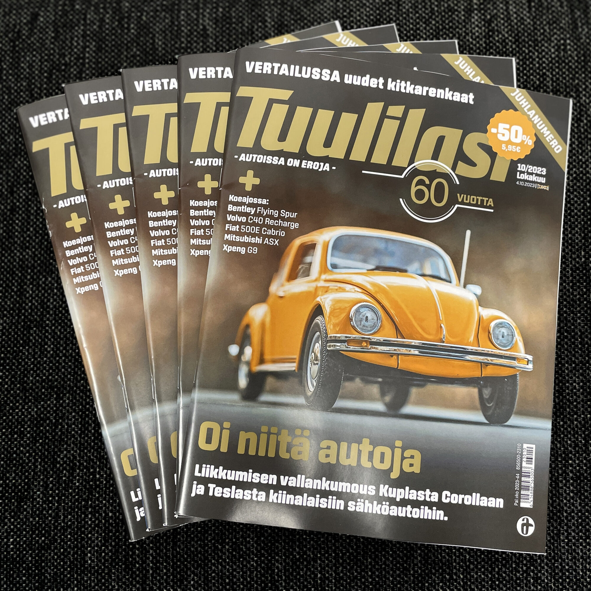 Tällä hetkellä toimin AD:na A-lehtien kustantamassa Tuulilasi-lehdessä, joka pääsi juuri kunnioitettavaan 60 vuoden ikään. Ohessa juhlanumeron kansi, johon upotimme juhlan kunniaksi pienen kepposen – Kupla on aidon näköisestä ulkomuodostaan huolimatta pienoismalli. 😉