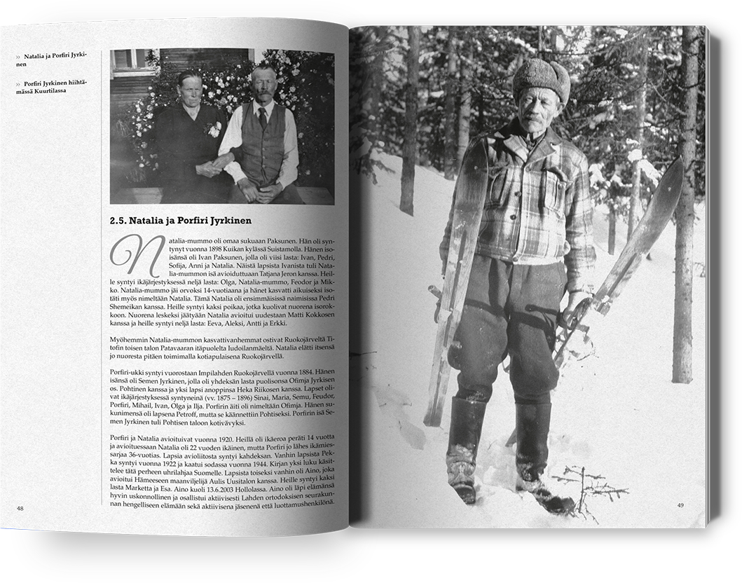 Toteutamme elämäkertoja tarvittaessa kokonaispalveluna ensimmäisestä haastattelusta painovalmiiksi tuotteeksi asti. Lisäksi autamme tarpeen mukaan myös elämäkertateoksen omatoimisessa kirjoittamisessa, sen rungon suunnittelussa tai kirjan taittamisessa. Havinalta on mahdollista tilata myös erilaisia yhdistelmiä haastatteluista, kuvien valinnasta, taitosta ja elämäkerran kirjoittamisesta. Kuljemme rinnalla koko elämäkerran toteutuksen ajan.